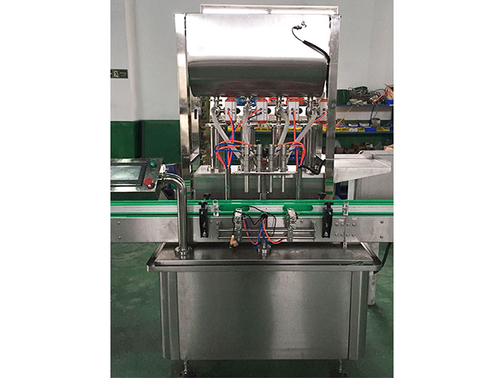 该液体灌装机集机械、气动、自动为一体。它具有自动化程度高,成品率高,适应性广,稳定性好等特点。