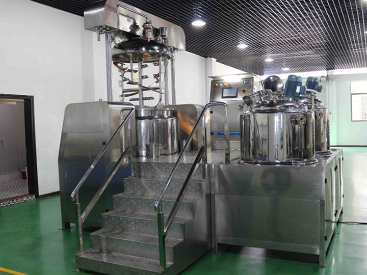 真空均质乳化机设备为非标定制设备,根据客户的工艺进行合理配置,适用于需要在真空状态下乳化搅拌的产品。可带有低速刮壁搅拌,用于高粘度产品乳化搅拌。可配置高剪切乳化机使用,适合分散、乳化、均质、搅拌混合等工艺过程。真空乳化机主要由水相锅、油相锅、乳化搅拌主锅、真空系统、升降系统(可选)、电器控制系统(可选用PLC)、操作平台等组成。