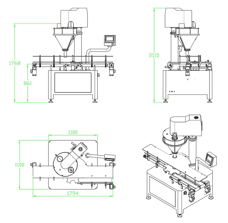 该系列罐装机能完成喂罐、托罐、充填计量、称重选别等工作,可与其它设备配套组成整套罐装流水线,适用于充填眼影粉、闪粉、胡椒粉、辣椒粉、奶粉、米粉、蛋白粉、豆奶粉、鸡粉、咖啡粉、药粉、添加剂、香精香料等。