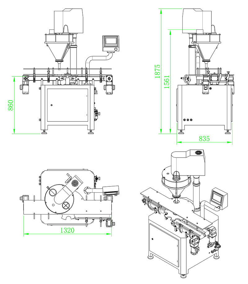 该系列罐装机能完成喂罐、托罐、充填计量、称重选别等工作,可与其它设备配套组成整套罐装流水线,适用于充填眼影粉、闪粉、胡椒粉、辣椒粉、奶粉、米粉、蛋白粉、豆奶粉、鸡粉、咖啡粉、药粉、添加剂、香精香料等。