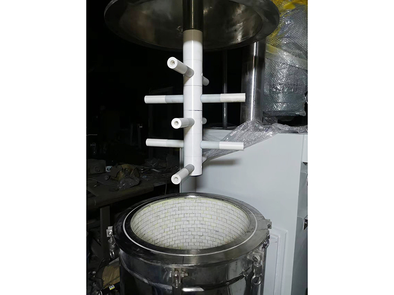 电机通过减速装置驱动筒体回转,筒体内的碎矿石和钢球在筒体回转时受摩擦力和离心力作用被衬板带到一定高度后由于重力作用,便产生抛落和泻落,矿石在冲击和研磨作用下逐步被粉碎。被粉碎的矿石经排料部分排出筒外。排出的矿物在螺旋分级机中经分级出合格产品后,粗砂通过联合进料器再回到球磨机内继续粉磨。供料机连续均匀地喂料,矿石经联合进料器连续均匀地进入球磨机,被磨碎的物料源源不断地从陶瓷球磨机中排出。陶瓷球磨机是可以每天24小时连续工作的粉磨设备。